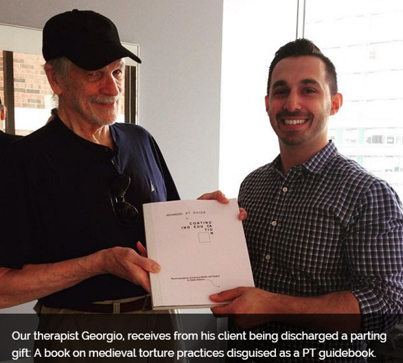 You can count on amazing manual therapy complimented with our cutting edge machinery to aid in your recovery. Have gait and balance issues? Our Alter-G treadmill is great for that! Recovering from a knee replacement? Georgio's last patient in the Lincoln Square physical therapy office left his treatment series with a big smile and parting gifts for the staff!